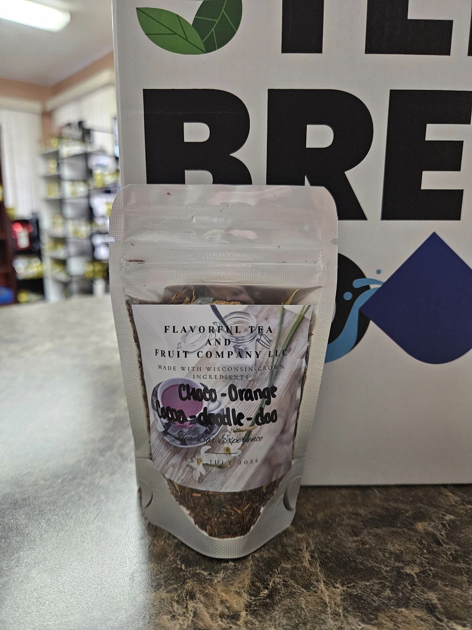Choco-Orange Cocoa-doodle-doo Tea brews in 8-10 minutes at 200-212 F. Use 1-2 level teaspoons of dry ingredients for a 6-ounce cup and re-steep the same ingredients up to 3 times without compromising flavor or quality.